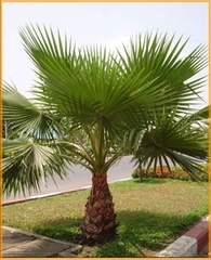 Kè Mỹ là cây xanh cảnh quan thuộc họ cau dừa, thân hình trụ mọc thẳng, có rễ chùm, là cây một lá mầm, không phân nhánh. Kè Mỹ có thể cao đến 30m, trên thân có sẹo do lá rụng để lại.