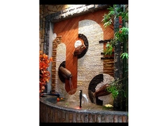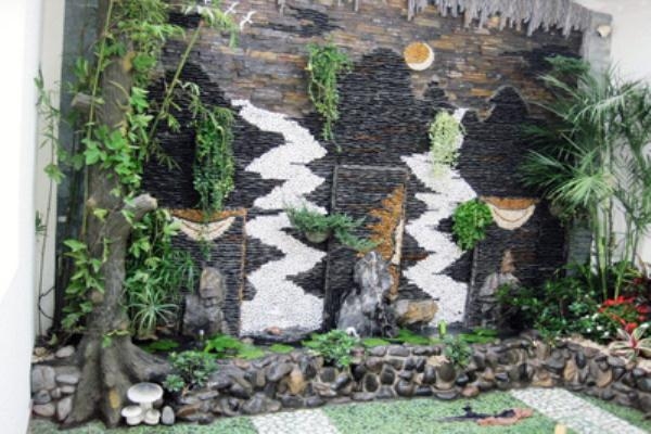 Công dụng: Tiểu cảnh nước áp tường là một yếu tố nước mang đậm phong cách châu Âu dùng làm một tường phân cách không gian trong sân vườn, quán cafe…