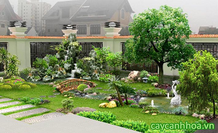 Sẽ thật tuyệt vời nếu như khu vườn nhà bạn có một dòng suối nhỏ hay một hồ nước xinh xinh, đó là sẽ nguồn cung cấp độ ẩm cho cây xanh phát triển. Ngoài cây cỏ, còn có thể đặt vào hồ những vòi phun nước, những bức tượng, vài tảng đá... và thả vào đó những chú cá cảnh nhỏ.